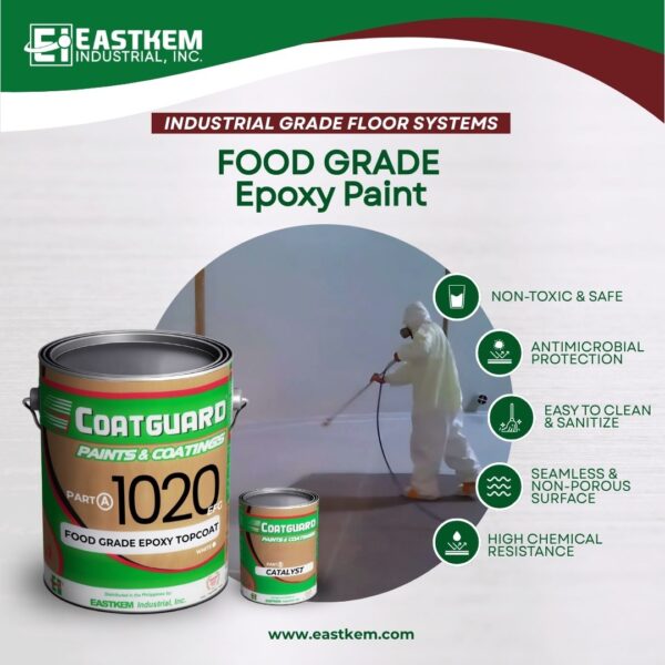 Coatguard 1020 Food Grade Epoxy Topcoat offers superior protection for tanks and vessels exposed to aggressive acids and chemicals. This coating combines food-safe properties with outstanding chemical and acid resistance, delivering a tough, non-toxic, and seamless lining that meets industry hygiene and safety requirements.